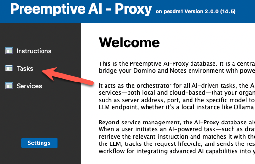 - Using the Notes client, open the AI-Proxy database